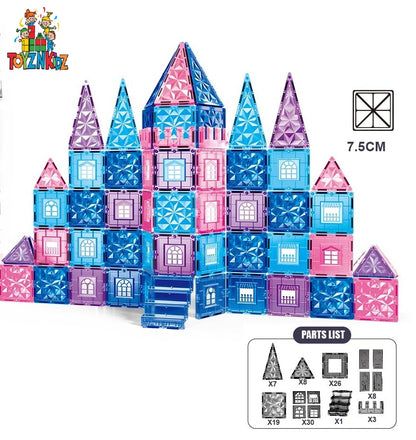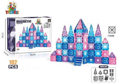 102 Parça Elmas Şato Manyetik Yapı Blokları-STEAM Eğitici Karo Oyun Seti (7.5 Cm)