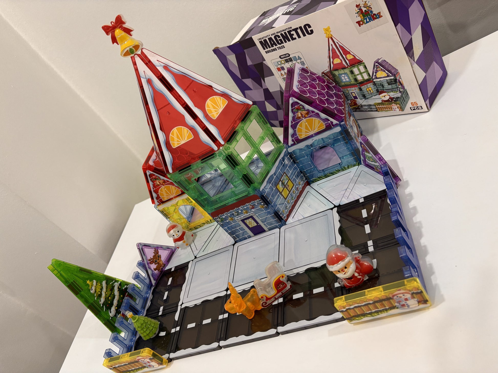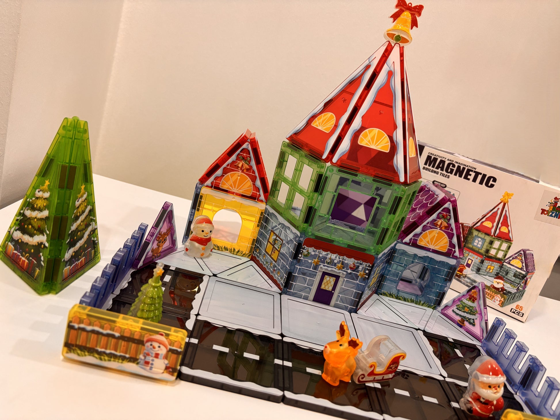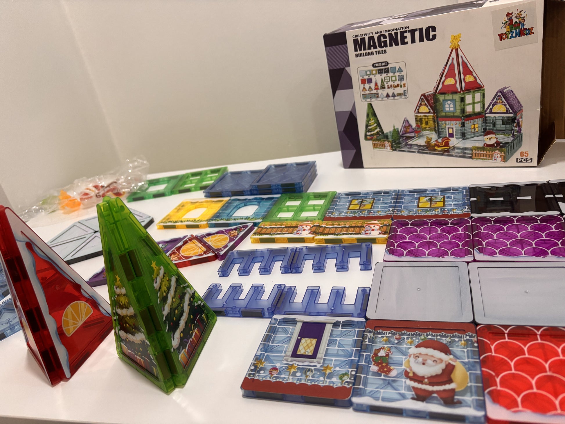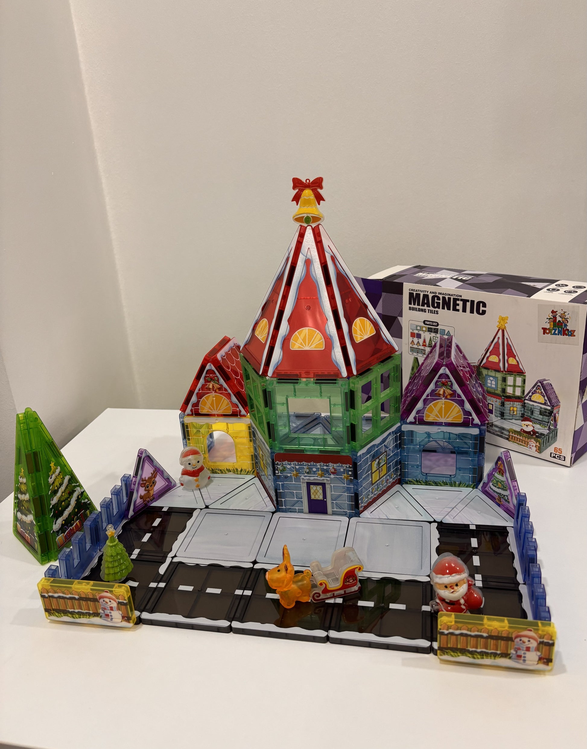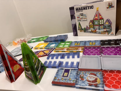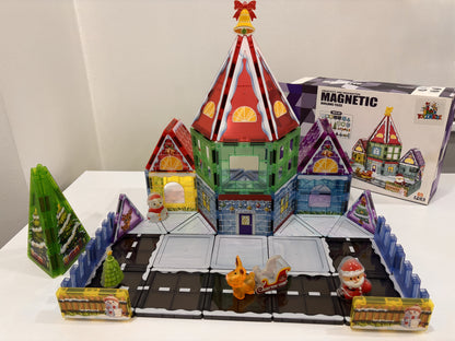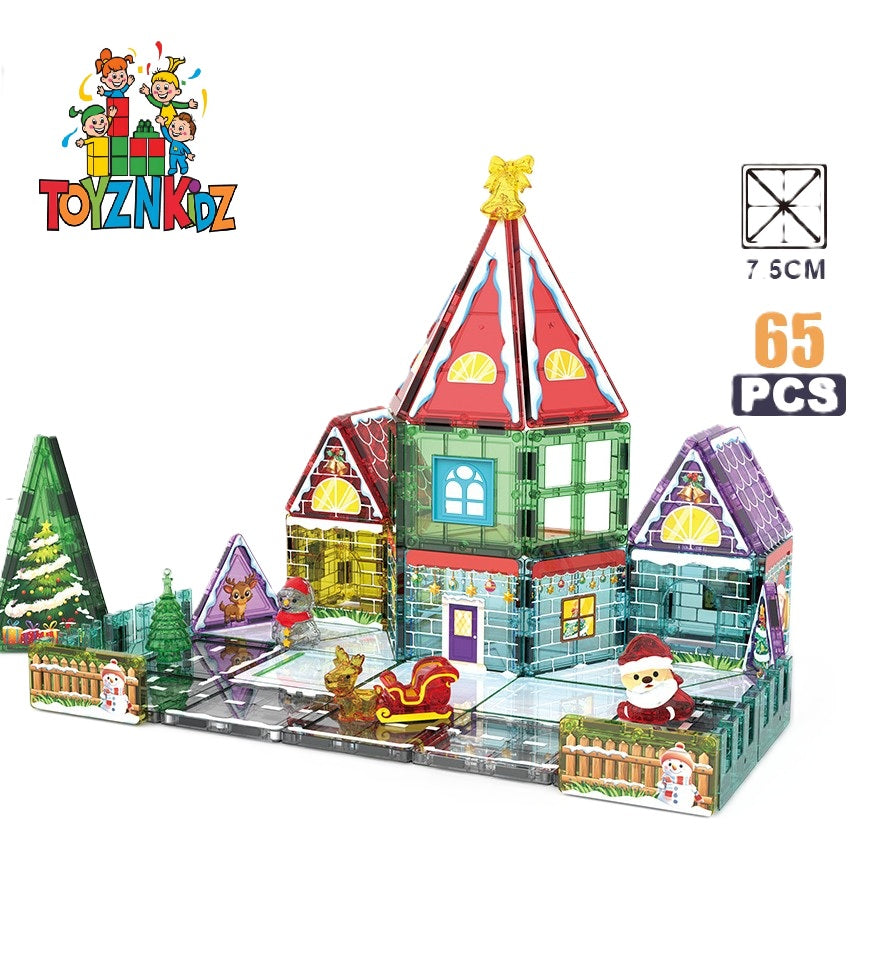 65 Parça Noel Evi Manyetik Yapı Blokları-STEAM Eğitici Karo Oyun Seti (7.5 Cm)