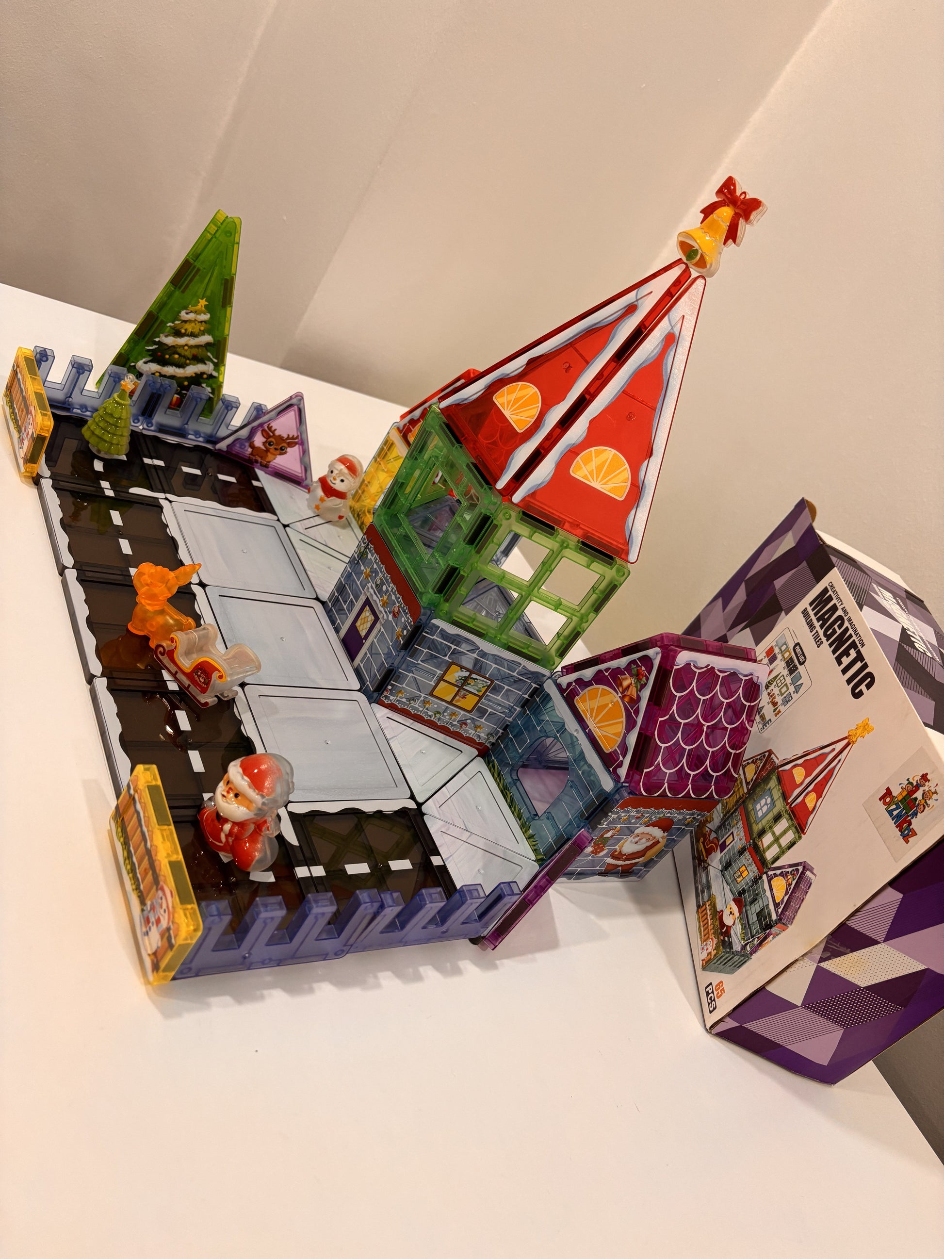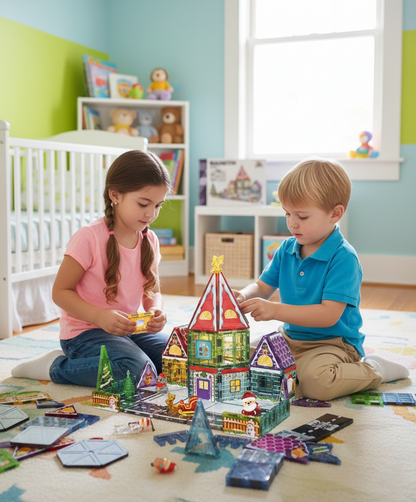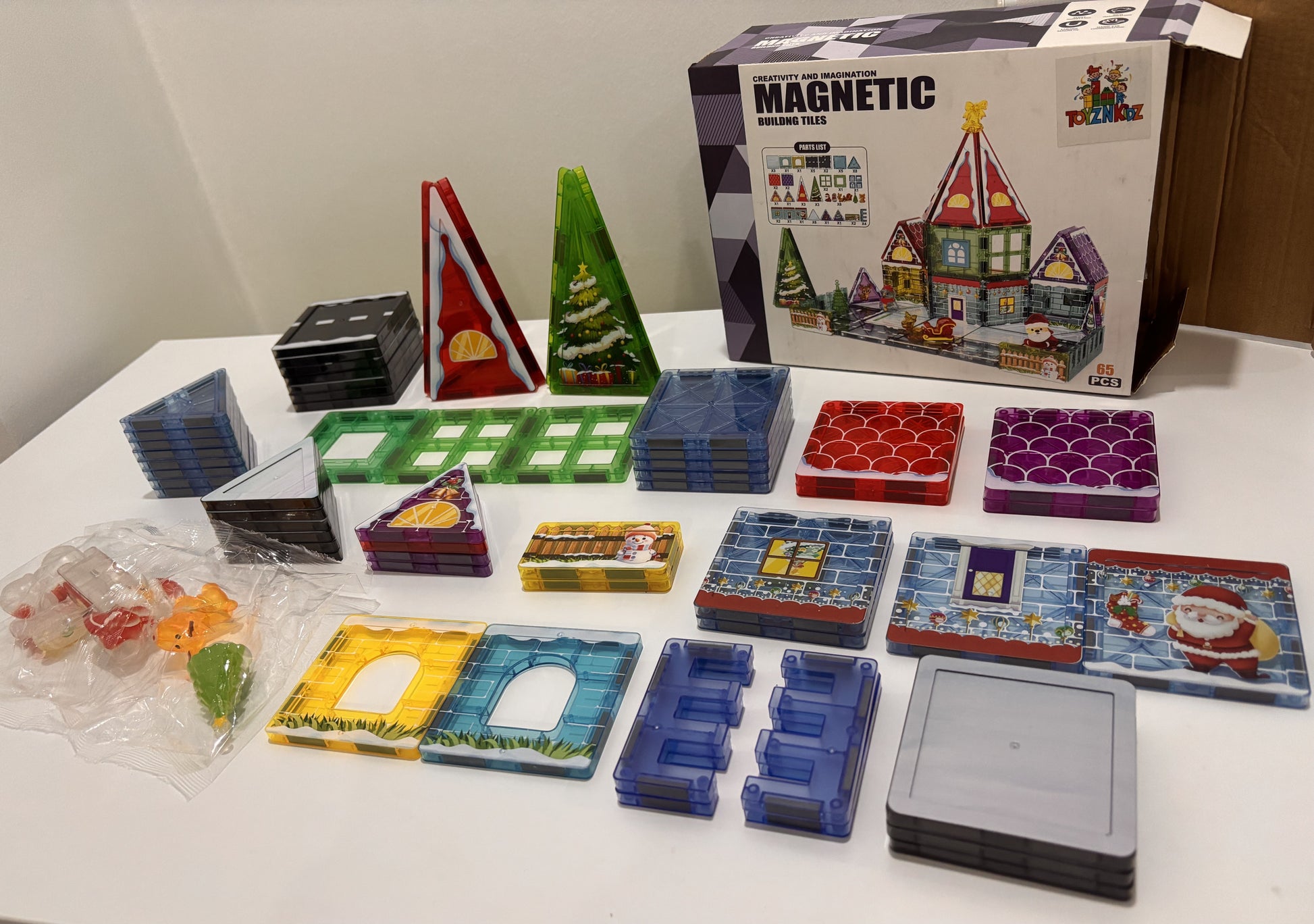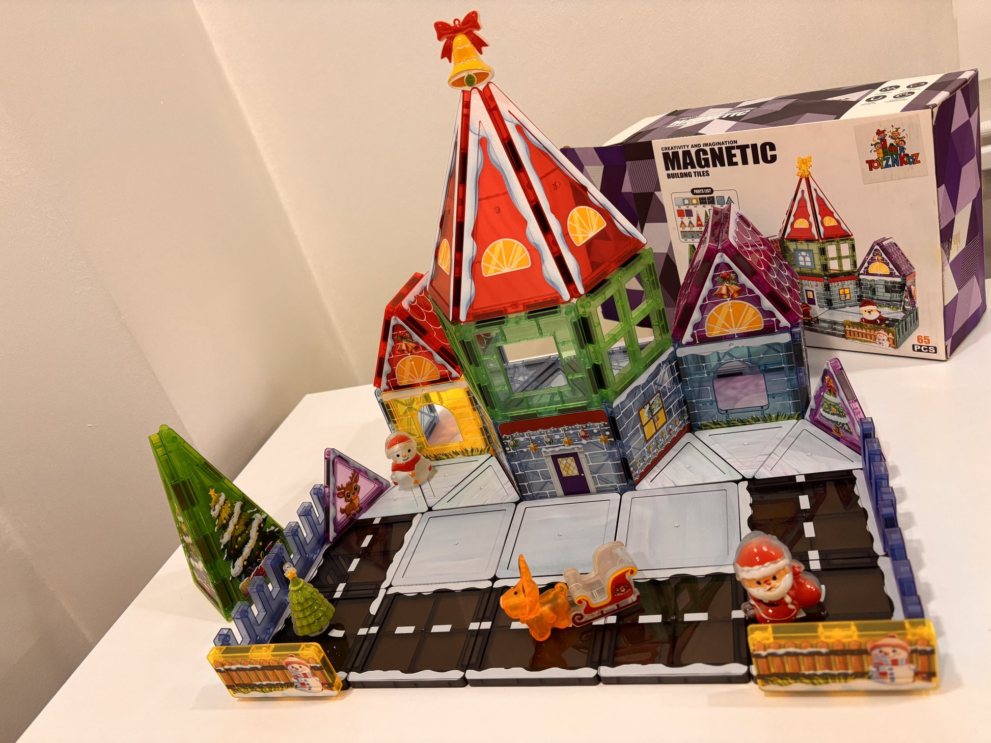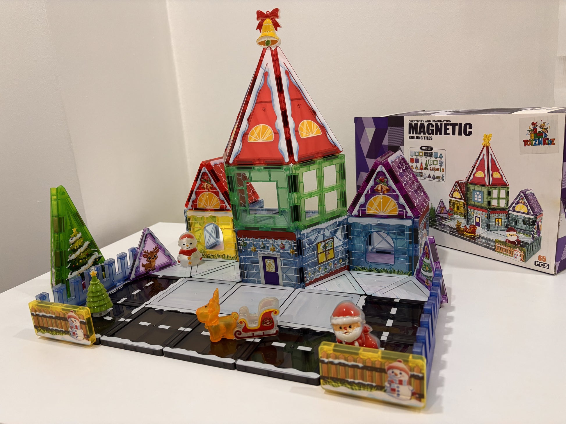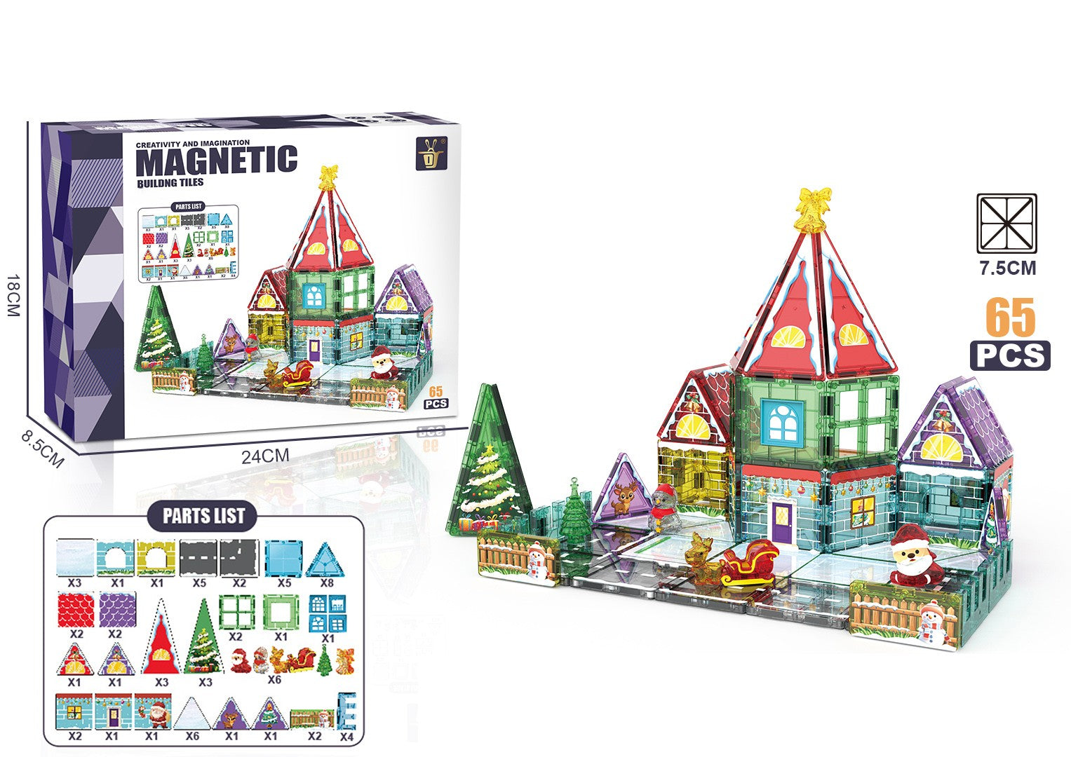 65 Parça Noel Evi Manyetik Yapı Blokları-STEAM Eğitici Karo Oyun Seti (7.5 Cm)